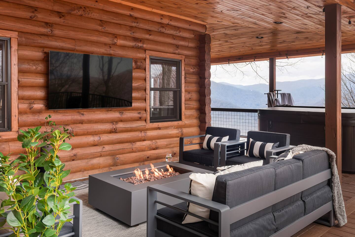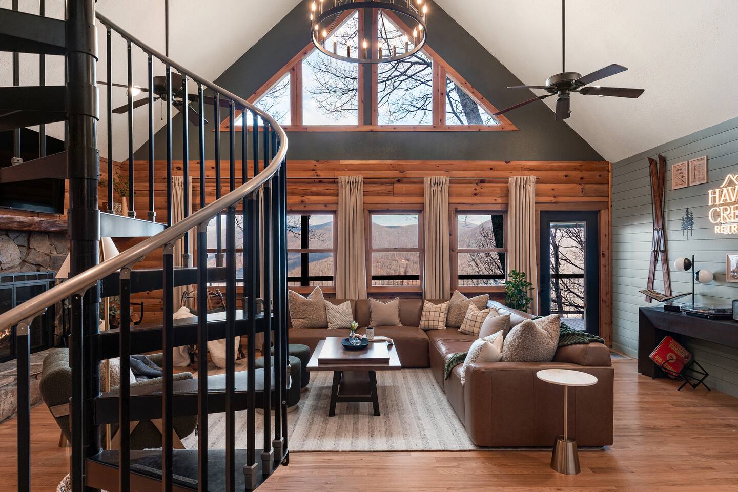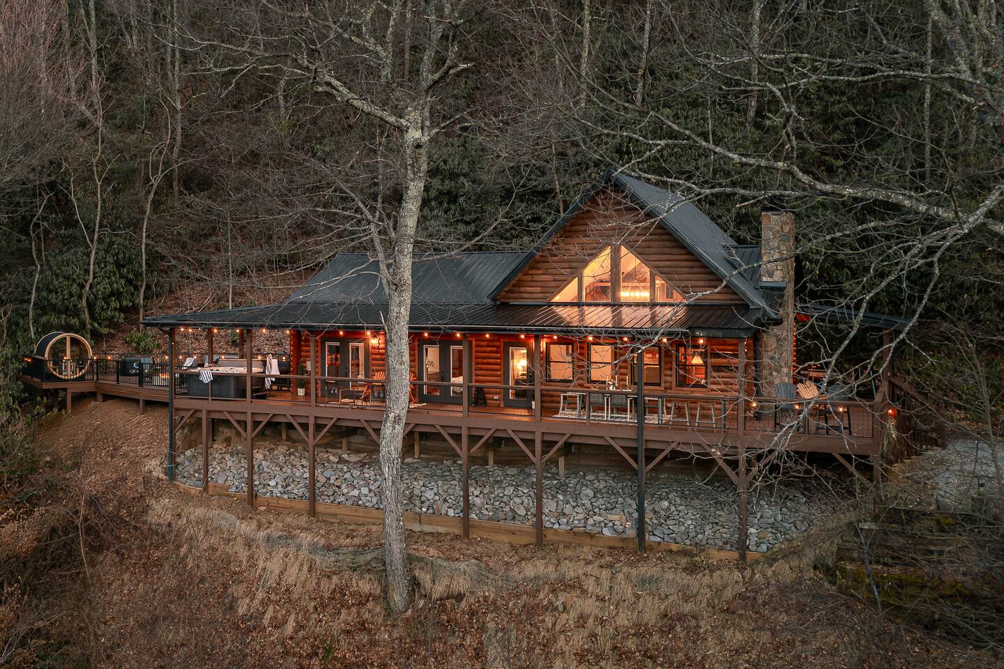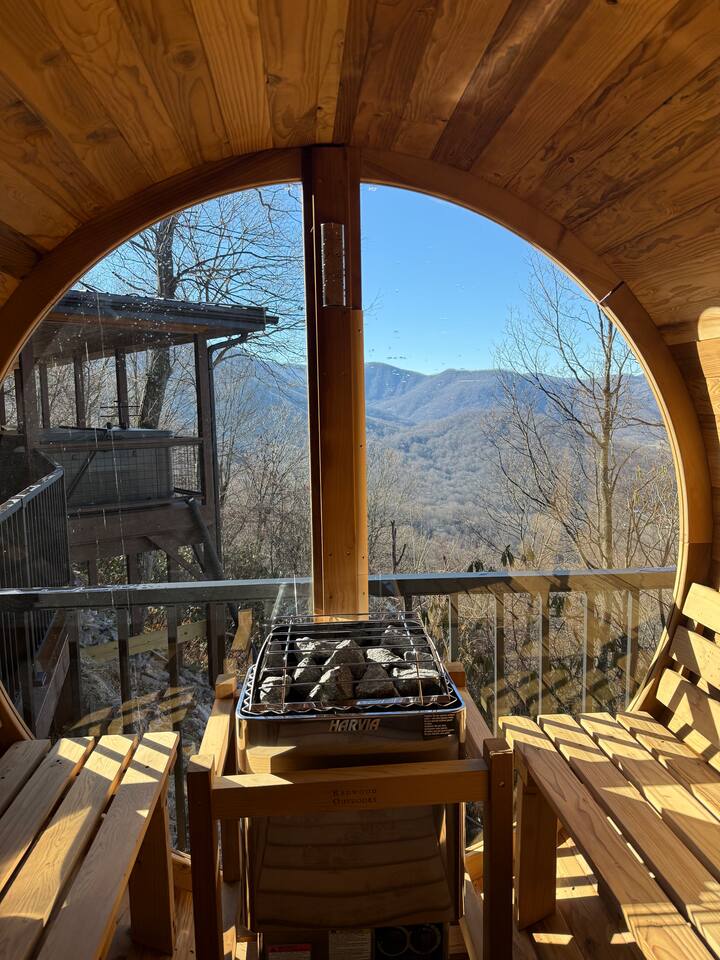 ✨ Luxury Mountain Wellness Retreat | Hot Tub, Sauna, Cold Plunge, Views Escape to a luxury mountain cabin in Maggie Valley near Waynesville, perched at 3,850 feet elevation with breathtaking year-round mountain views and exceptional privacy. This professionally designed wellness retreat blends cozy log-cabin charm with modern luxury, offering a private hot tub, panoramic barrel sauna, cold plunge, and expansive decks designed for rest, renewal, and reconnection. Ideal for couples seeking a romantic getaway—or small families looking for an elevated mountain escape—this retreat delivers both tranquility and unforgettable views. 🏡 The Space | Renovated Luxury Log Cabin This beautifully renovated log cabin features mountain-modern interiors, new furnishings throughout, and thoughtful upgrades designed to elevate your stay. Key features: • Sleeps 6 • 2 King bedrooms + loft with twin daybed and trundle • Professionally designed mountain-modern interior • New lighting, furniture, TVs & decor • Wood-burning fireplace • Wall of windows with panoramic mountain views • Renovated spa-style bathrooms • Private, secluded setting • Dog friendly cabin (porch/deck space is fully enclosed so your pups can hang outside with you) • Washer & dryer • High-speed WiFi & Spectrum cable • Wraparound covered porch (60’) • Expansive 1,000+ sq ft Trex deck 🛏 Bedrooms & Bathrooms | Spa-Inspired Comfort Primary Suite The spacious primary suite features a king bed with luxurious bedding and Helix mattress, 55” Roku TV, dedicated desk area, and French doors opening to the covered deck. The spacious en-suite bathroom has dual vanities, makeup area, towel warmer, and a fully renovated modern spa-style shower. Second Bedroom The second bedroom includes a king bed with luxurious bedding and Kingsdown mattress. Additional highlights include a 48” Roku TV, French doors opening to the covered deck and easy hallway access to a fully renovated second bathroom featuring a chic, modern shower. Loft (Note: This is listed as Living Room in AirBNB as there isn't an option for loft.) Accessed via a spiral staircase, the loft offers amazing views, a twin daybed with pull-out twin trundle, a chaise lounge, and a massage chair. This space is perfect for additional guests or relaxation space. 🍳 Kitchen & Dining | Fully Stocked & Entertainer-Ready The well-appointed kitchen is fully stocked for home-cooked meals, wine nights, and slow mornings with mountain views. • Pots, pans, baking dishes & utensils • Air fryer, Instant Pot, crockpot & microwave • Cooking oil & spices provided • Dishwasher • Cuisinart 12-cup coffee maker + single-serve brewer • Nespresso coffee/espresso maker • Fellow electric kettle, grinder & pour-over • K-Cup/Nespresso/Coffee Beans/Tea provided • New refrigerator with filtered water dispenser • Wine glasses, bar tools & drinkware • Indoor & outdoor dishware The dining table seats 6, with 4 additional barstools at the breakfast bar. 🛋 Living & Lounge Spaces | Cozy Meets Elevated Unwind by the wood-burning fireplace on the oversized leather sectional as mountain views stretch beyond the wall of windows. Put a record on, pour your favorite drink, and settle in for an evening of quiet conversation or a little friendly competition from the curated collection of games. Additional entertainment includes: • 65” Roku TV • Record player with Marshall speaker • Portable speakers • Telescope for starry night viewing • Arcade1Up Infinity 32” game table (40+ games) • Board & card games, including Mahjong 🌄 Outdoor Space & Wellness Amenities | Hot Tub, Sauna, Cold Plunge & Views Begin the day with coffee on the deck as clouds drift through the valley below. Afternoons invite a restorative circuit between the hot tub, sauna, and cold plunge, with time to unwind and take in the views. As evening settles in, fire up the Gozney for homemade pizza, relax in the outdoor living room beside the fire table, then gather around the fire pit lounge as the mountains fade into dusk. Outdoor amenities include: • Private hot tub with Bluetooth audio • Barrel sauna with panoramic mountain views • Cold plunge with seasonal chiller • String-lit deck with both covered and uncovered spaces • Weber gas grill • Gozney pizza oven • Outdoor dining table (seats 6) • Bar table seating for 2 • Outdoor TV lounge with 65” TV & gas fire table • Gas firepit lounge with Adirondack seating Wellness features: • Hot tub + sauna + cold plunge circuit • Luxury robes • Yoga mats and blocks • Dumbbell weight set 📍 Location | Maggie Valley, NC • 9 miles to Waynesville (Gateway to the Smokies) • 8 miles to Blue Ridge Parkway (Soco Road access) • 7 miles to Cataloochee Ranch (dining & events) • 8 miles to Cataloochee Ski Area • 18 miles to Cherokee Casino • 30 miles to West Asheville • 30 miles to Bryson City • 25 miles to Sylva • 15 minutes to groceries (Ingles and Publix) • Nearby hiking, waterfalls, elk viewing, trout fishing, tubing, skiing, breweries & wineries 🌿 The Haven Crest Retreat Story Haven Crest Retreat was created as a place to slow down, breathe deeper, and reconnect with nature, with each other, and with yourself. Perched high above the valley, we designed this cabin as a true mountain wellness escape, blending timeless log-cabin character with elevated, modern comforts. Every renovation, material choice, and amenity was selected with intention—from the panoramic sauna and cold plunge circuit to the expansive decks designed for quiet mornings, watching the clouds float by and viewing those amazing sunsets. Whether you’re here to celebrate something special or simply step away from the noise of everyday life, our hope is that you leave feeling restored, grounded, and already planning your return.