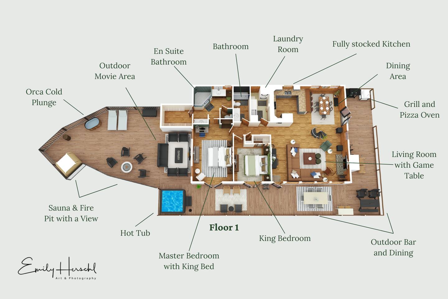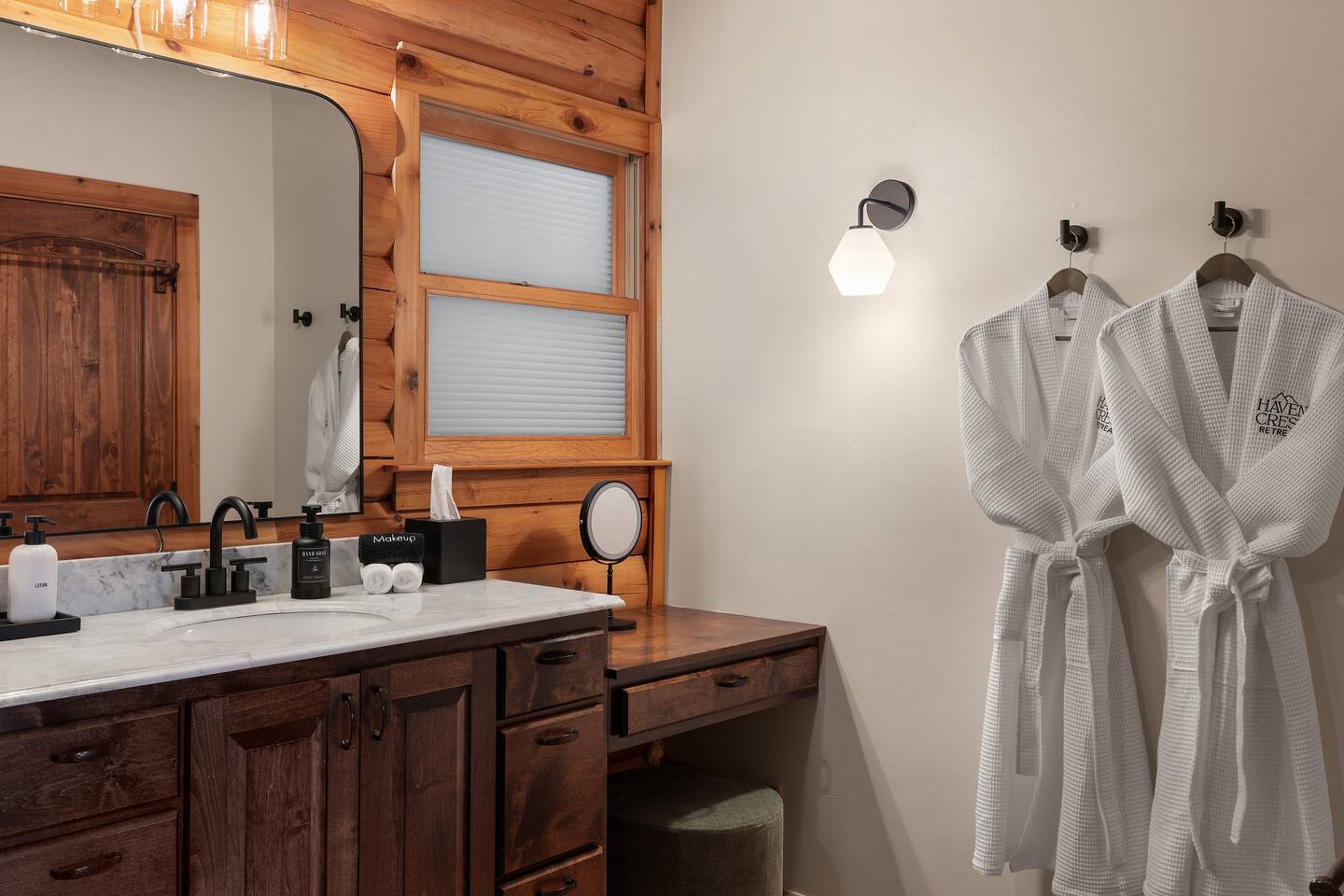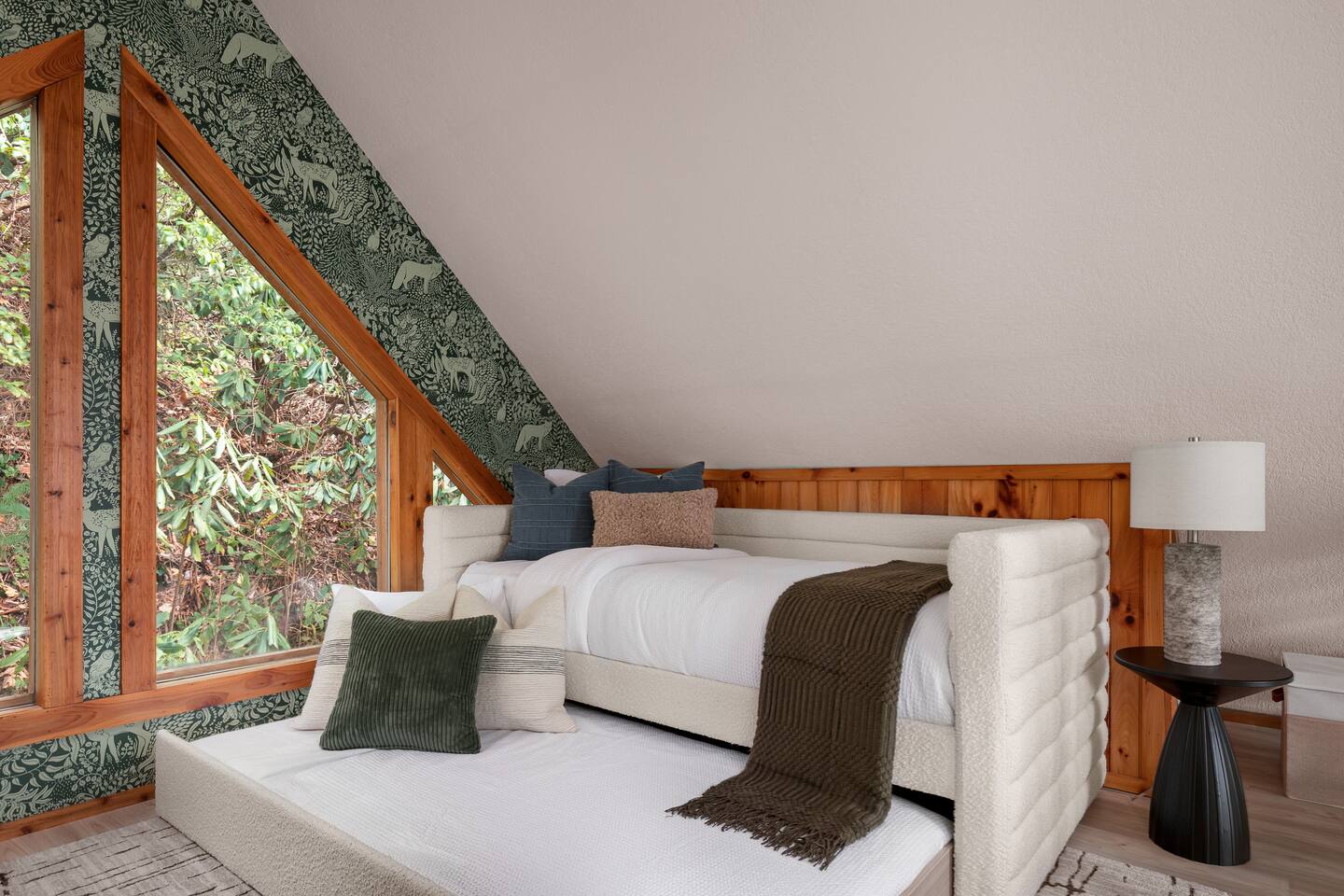✨ Luxury Mountain Wellness Retreat | Hot Tub, Sauna, Cold Plunge, Views Escape to a luxury mountain cabin in Maggie Valley near Waynesville, perched at 3,850 feet elevation with breathtaking year-round mountain views and exceptional privacy. This professionally designed wellness retreat blends cozy log-cabin charm with modern luxury, offering a private hot tub, panoramic barrel sauna, cold plunge, and expansive decks designed for rest, renewal, and reconnection. Ideal for couples seeking a romantic getaway—or small families looking for an elevated mountain escape—this retreat delivers both tranquility and unforgettable views. 🏡 The Space | Renovated Luxury Log Cabin This beautifully renovated log cabin features mountain-modern interiors, new furnishings throughout, and thoughtful upgrades designed to elevate your stay. Key features: • Sleeps 6 • 2 King bedrooms + loft with twin daybed and trundle • Professionally designed mountain-modern interior • New lighting, furniture, TVs & decor • Wood-burning fireplace • Wall of windows with panoramic mountain views • Renovated spa-style bathrooms • Private, secluded setting • Dog friendly cabin (porch/deck space is fully enclosed so your pups can hang outside with you) • Washer & dryer • High-speed WiFi & Spectrum cable • Wraparound covered porch (60’) • Expansive 1,000+ sq ft Trex deck 🛏 Bedrooms & Bathrooms | Spa-Inspired Comfort Primary Suite The spacious primary suite features a king bed with luxurious bedding and Helix mattress, 55” Roku TV, dedicated desk area, and French doors opening to the covered deck. The spacious en-suite bathroom has dual vanities, makeup area, towel warmer, and a fully renovated modern spa-style shower. Second Bedroom The second bedroom includes a king bed with luxurious bedding and Kingsdown mattress. Additional highlights include a 48” Roku TV, French doors opening to the covered deck and easy hallway access to a fully renovated second bathroom featuring a chic, modern shower. Loft (Note: This is listed as Living Room in AirBNB as there isn't an option for loft.) Accessed via a spiral staircase, the loft offers amazing views, a twin daybed with pull-out twin trundle, a chaise lounge, and a massage chair. This space is perfect for additional guests or relaxation space. 🍳 Kitchen & Dining | Fully Stocked & Entertainer-Ready The well-appointed kitchen is fully stocked for home-cooked meals, wine nights, and slow mornings with mountain views. • Pots, pans, baking dishes & utensils • Air fryer, Instant Pot, crockpot & microwave • Cooking oil & spices provided • Dishwasher • Cuisinart 12-cup coffee maker + single-serve brewer • Nespresso coffee/espresso maker • Fellow electric kettle, grinder & pour-over • K-Cup/Nespresso/Coffee Beans/Tea provided • New refrigerator with filtered water dispenser • Wine glasses, bar tools & drinkware • Indoor & outdoor dishware The dining table seats 6, with 4 additional barstools at the breakfast bar. 🛋 Living & Lounge Spaces | Cozy Meets Elevated Unwind by the wood-burning fireplace on the oversized leather sectional as mountain views stretch beyond the wall of windows. Put a record on, pour your favorite drink, and settle in for an evening of quiet conversation or a little friendly competition from the curated collection of games. Additional entertainment includes: • 65” Roku TV • Record player with Marshall speaker • Portable speakers • Telescope for starry night viewing • Arcade1Up Infinity 32” game table (40+ games) • Board & card games, including Mahjong 🌄 Outdoor Space & Wellness Amenities | Hot Tub, Sauna, Cold Plunge & Views Begin the day with coffee on the deck as clouds drift through the valley below. Afternoons invite a restorative circuit between the hot tub, sauna, and cold plunge, with time to unwind and take in the views. As evening settles in, fire up the Gozney for homemade pizza, relax in the outdoor living room beside the fire table, then gather around the fire pit lounge as the mountains fade into dusk. Outdoor amenities include: • Private hot tub with Bluetooth audio • Barrel sauna with panoramic mountain views • Cold plunge with seasonal chiller • String-lit deck with both covered and uncovered spaces • Weber gas grill • Gozney pizza oven • Outdoor dining table (seats 6) • Bar table seating for 2 • Outdoor TV lounge with 65” TV & gas fire table • Gas firepit lounge with Adirondack seating Wellness features: • Hot tub + sauna + cold plunge circuit • Luxury robes • Yoga mats and blocks • Dumbbell weight set 📍 Location | Maggie Valley, NC • 9 miles to Waynesville (Gateway to the Smokies) • 8 miles to Blue Ridge Parkway (Soco Road access) • 7 miles to Cataloochee Ranch (dining & events) • 8 miles to Cataloochee Ski Area • 18 miles to Cherokee Casino • 30 miles to West Asheville • 30 miles to Bryson City • 25 miles to Sylva • 15 minutes to groceries (Ingles and Publix) • Nearby hiking, waterfalls, elk viewing, trout fishing, tubing, skiing, breweries & wineries 🌿 The Haven Crest Retreat Story Haven Crest Retreat was created as a place to slow down, breathe deeper, and reconnect with nature, with each other, and with yourself. Perched high above the valley, we designed this cabin as a true mountain wellness escape, blending timeless log-cabin character with elevated, modern comforts. Every renovation, material choice, and amenity was selected with intention—from the panoramic sauna and cold plunge circuit to the expansive decks designed for quiet mornings, watching the clouds float by and viewing those amazing sunsets. Whether you’re here to celebrate something special or simply step away from the noise of everyday life, our hope is that you leave feeling restored, grounded, and already planning your return.