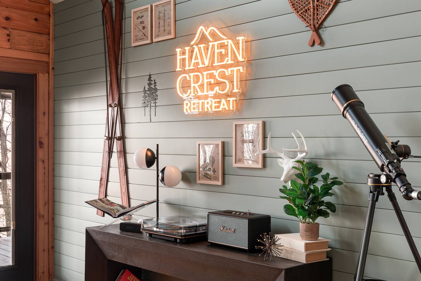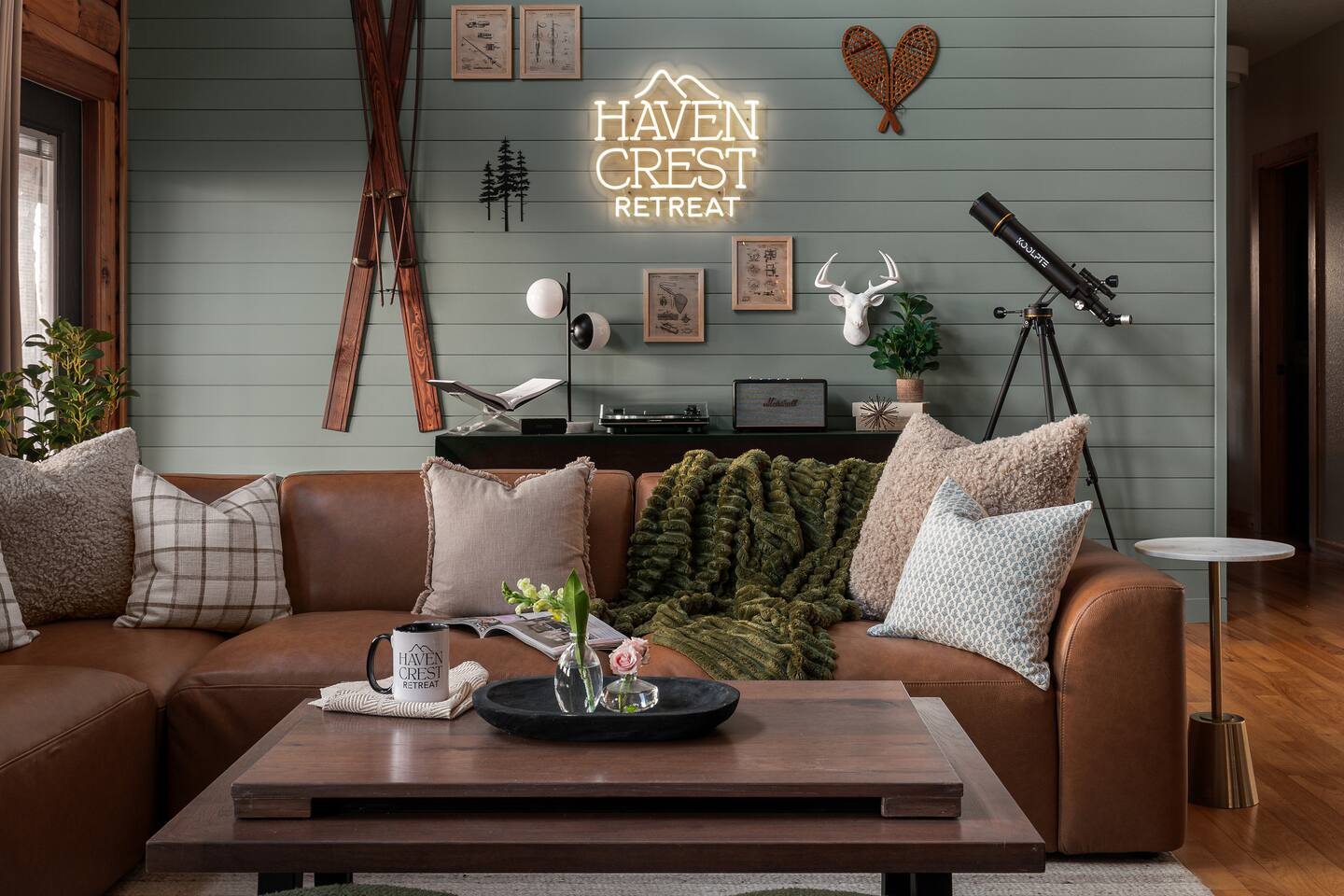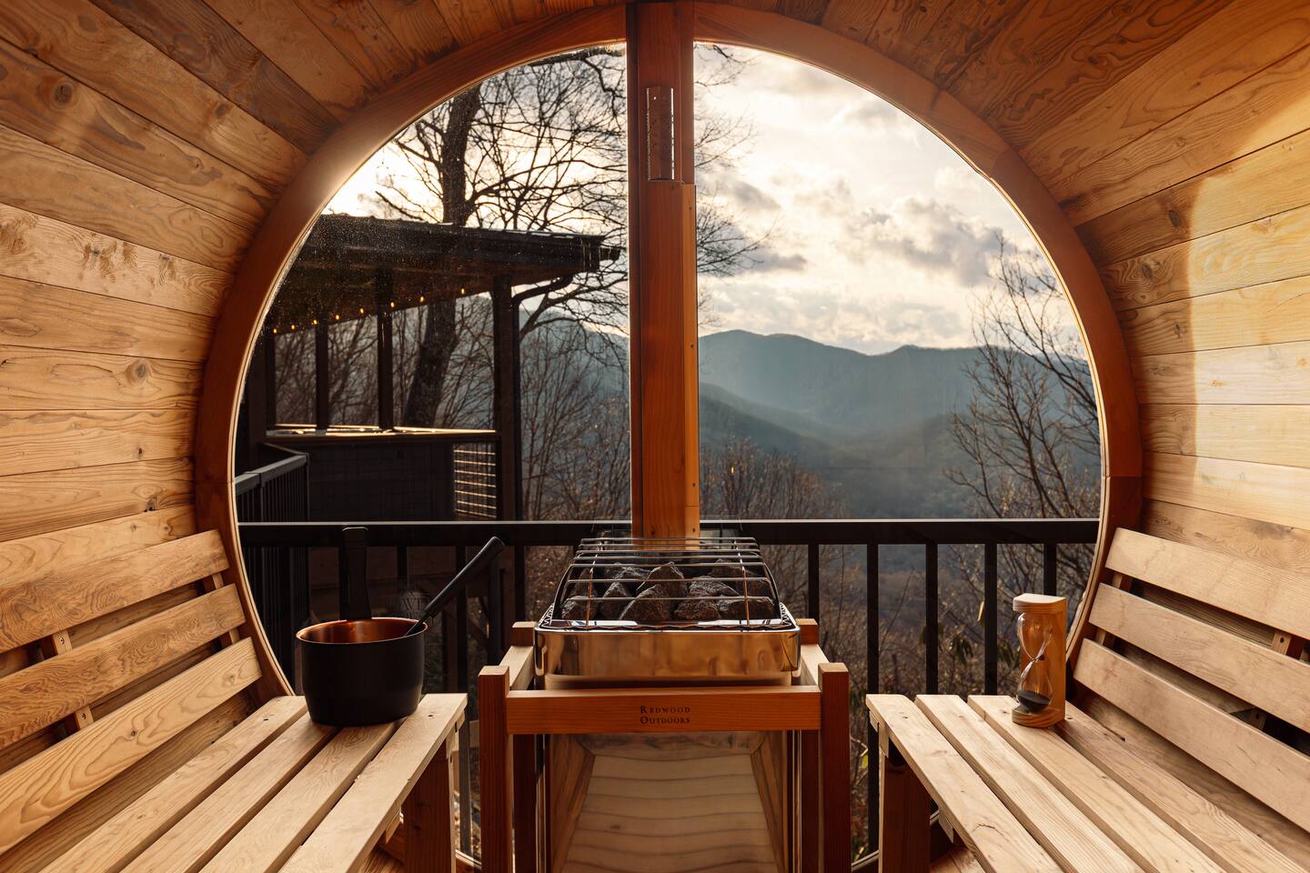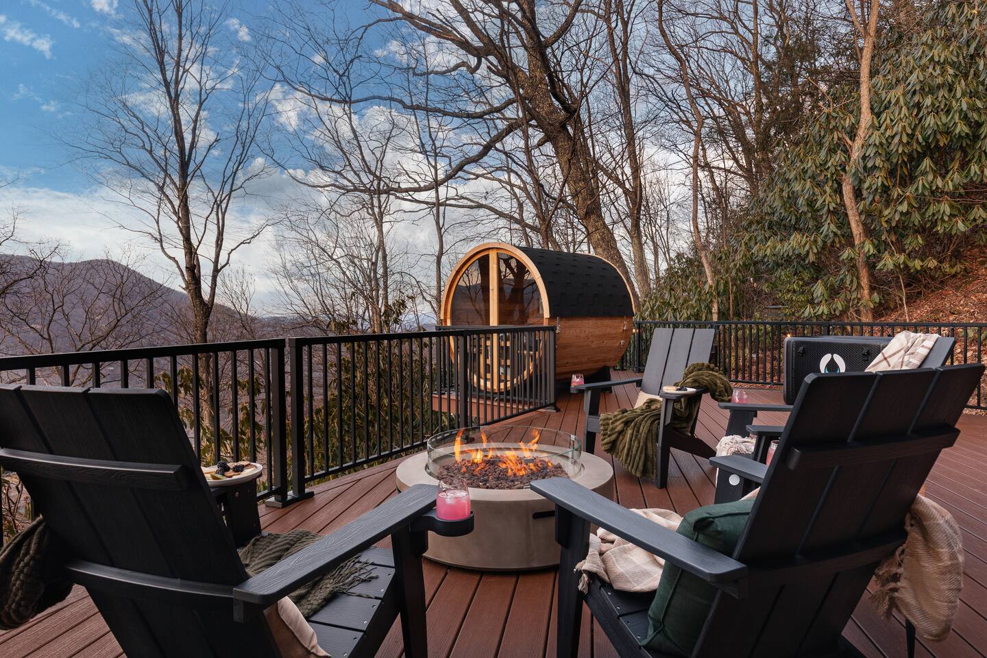Welcome to Haven Crest Retreat, a professionally designed luxury mountain wellness retreat. Perched at 3,850 feet, sweeping year-round views and a private mountainside setting create space to slow down and reconnect. - Hot tub - Panoramic barrel sauna - Cold plunge - Expansive string-lit decks - Outdoor living room + 65” TV & fire table - Fire pit lounge - Gozney pizza oven - Massage chair Perfect for couples or small families seeking an elevated mountain escape above the clouds.