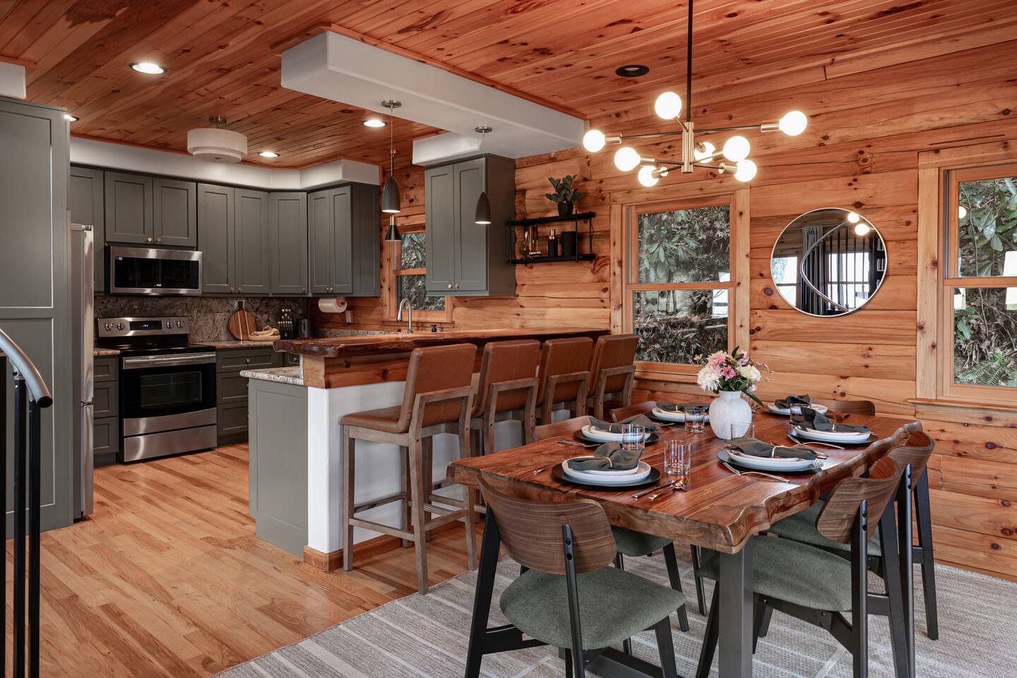 This cabin was truly magical from the moment we arrived! Between the incredible views, beautiful design, and top-tier amenities, the gracious hosts truly thought of everything we could possibly need or want to make our stay memorable. We loved pampering ourselves and taking in the view, whether having our morning coffee, homemade pizza, or simply relaxing by the fire! The enclosed deck was a huge plus, as it allowed our pup to safely come outside with us, roam free, and enjoy the mountain air alongside us! We were obsessed with the luxury feel and the thoughtful details put into every aspect of the home. It was a seamless, peaceful getaway, and we can’t wait to come back!!!